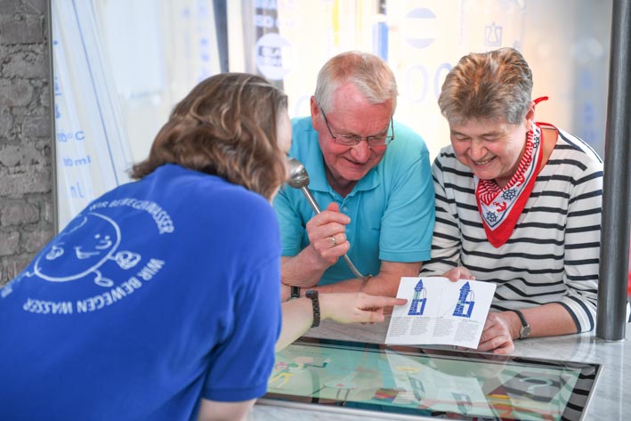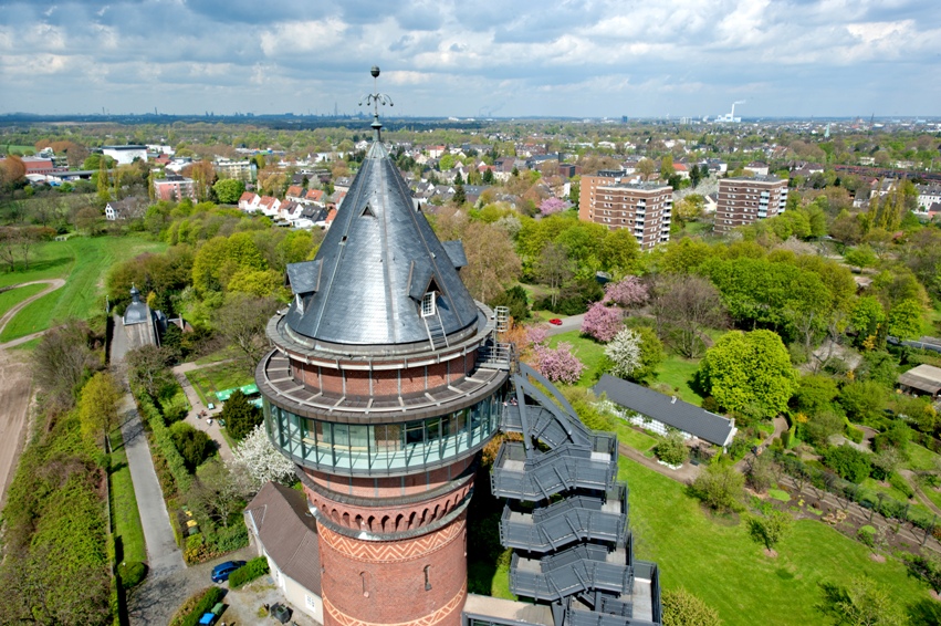 Im über 100 Jahre alten Wasserturm erfahren die Besucher Wissenswertes über das nasse Element. Moderne Medientechnik und die herausragende Architektur machen den Aufenthalt im Aquarius Wassermuseum zu einem Erlebnis. Das Museum wird betrieben von der RWW Rheinisch-Westfälische Wasserwerksgesellschaft mbH. Nach der Fahrt mit zwei gläsernen Aufzügen startet der Rundgang in 35 Metern Höhe mit herrlichem Blick auf das Ruhrlandpanorama. Mit der Chipkarte aktivieren die Besucher 30 Multimedia-Stationen. Man lernt, wie ein Wasserturm funktioniert und radelt mit dem Ruhrmobil die Ruhr entlang. Man erfährt viel über die Trinkwasseraufbereitung an der Ruhr. Weitere Highlights sind die Teilnahme an der Weltwasserkonferenz und ein Treffen mit den letzten Turmbewohnern. Beim Antippen erklärt der sprechende Globus Spektakuläres übers Wasser weltweit. Jeder Besucher kann bei Quiz und Spiel rund um das Thema Wasser Punkte für seine persönliche Abschlussurkunde sammeln.Der Wasserturm wurde 1892/93 von August Thyssen gebaut, um sein nahe gelegenes Bandeisenwerk mit Wasser zu versorgen. Im Hochbehälter wurden 500.000 Liter Wasser gespeichert. Heute sind es noch 50.000 Liter - zum Anschauen, nicht zur Versorgung. Der Wasserturm gehört seit 1912 zur RWW. Nach seiner Stilllegung 1982 drohte ihm der Abriss. Als bedeutende Landmarke für Mülheim wurde er erhalten und unter Denkmalschutz gestellt. Seit 1992 stehen im neu geschaffenen Museum Wasser und Industriegeschichte sowie der vorbeugende Gewässerschutz im Vordergrund. Seit 1999 ist der Aquarius Ankerpunkt der Route Industriekultur, hier startet die Themenroute Geschichte und Gegenwart der Ruhr.