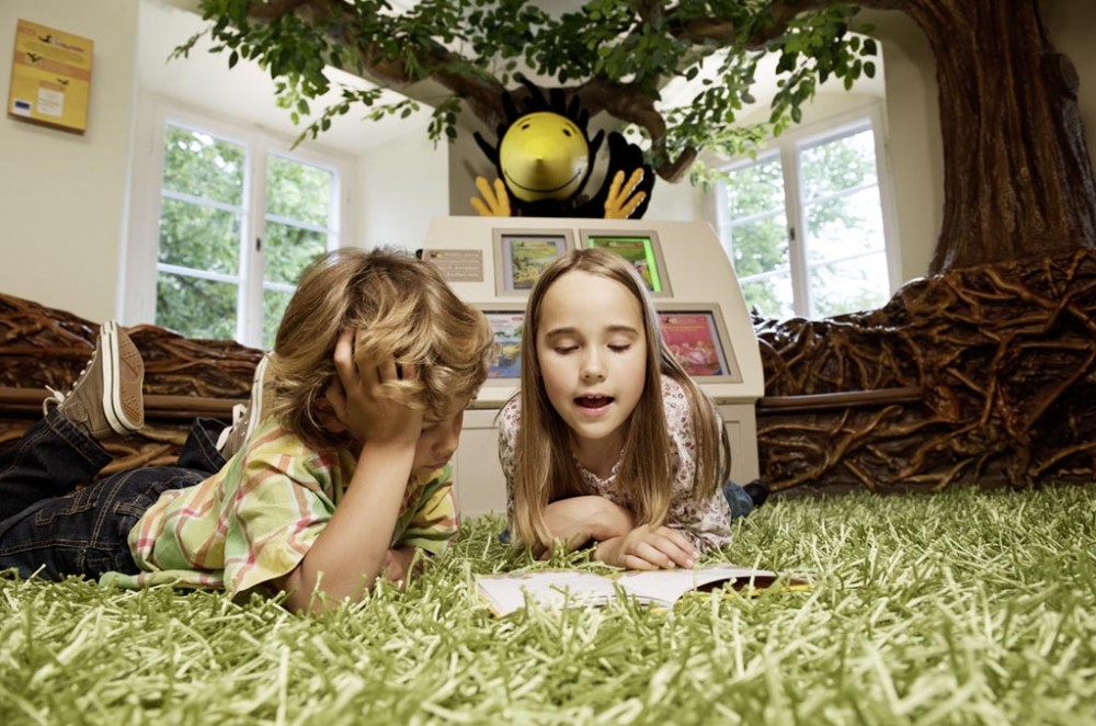 Kinder und Jugendliche entdecken das Museum Ravensburger mit der tiptoi® Museums-Rallye ganz spielerisch: Der orangefarbene Stift erzählt in jedem Raum Wissenswertes und stellt Quizfragen. Erwachsene werden von einem Audioguide begleitet, der spannende Hintergrundgeschichten rund um die Ausstellung erzählt. Wer genug Zeit einplant, kann nach seinem Rundgang in der Spiel- und Leselounge schmökern und spielen – und das bei schönem Wetter im idyllischen Spielehof sogar unter freiem Himmel.